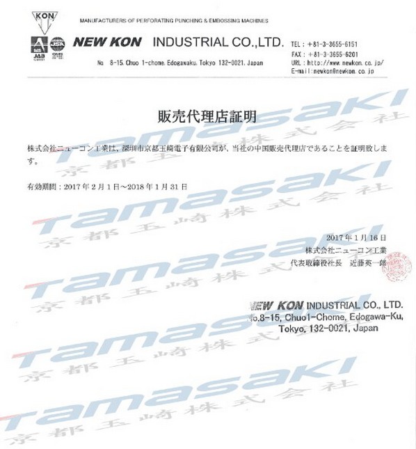 喜訊!京都玉崎正式成為日本NEWKON新光中國代理商