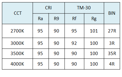 1、光效可達(dá)到155LM/W@80Ra,135LM/W@90Ra;