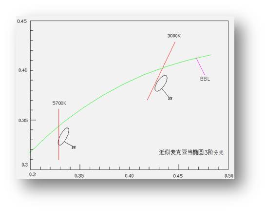 4、采用近似3階麥克亞當(dāng)橢圓分光篩選;