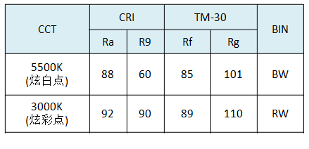 3. Colorful COB系列產(chǎn)品中炫彩,可以呈現(xiàn)出同樣自然的白光,同時(shí)還能增強(qiáng)彩色對(duì)象的外觀,色彩也更為飽滿(mǎn)鮮明、色彩辨別力和明凈度更佳。